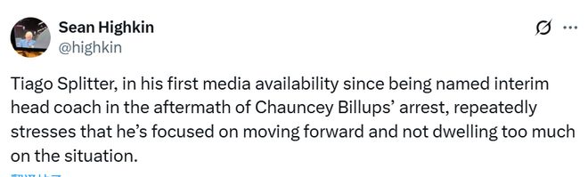 談到這次職位變動是否會影響大個子們(瀚森、克林根)的使用和成長計劃,他也表示一切照舊,不會去改動任何東西。被記者問及今晚的中鋒輪換時,斯普利特說道:“我不能向你透露具體的安排。瀚森很好,瀚森很棒,我們需要給他耐心。”