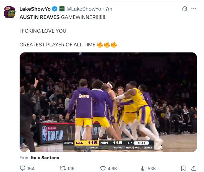湖人都用I FCXXING LOVE YOU 歷史最偉大的球員來形容里夫斯了。
