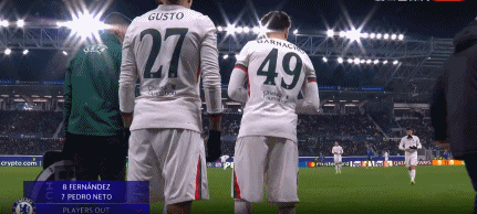 第46分鐘,切爾西半場換人調整,韋斯利-福法納替補上場
