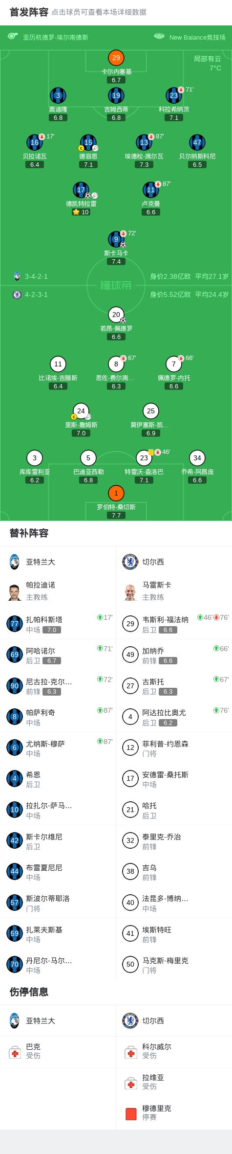 第17分鐘,被動調整,貝拉諾瓦傷退,扎帕科斯塔替補上場
